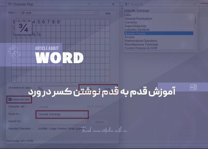 نرمافزار ورد یکی از بهترین ابزار برای نوشتن مقالات علمی و محتواهایی است که در آنها باید از علائم ریاضی استفاده کرد. این برنامه قابلیتهای مختلفی را در اختیار کاربران قرار میدهد تا با استفاده از آنها بتوانند عملیات ریاضی را به درستترین شکل ممکن به تصویر بکشند. از جمله علائم ریاضی که ممکن است برخی در نمایش آن دچار مشکل شوند، نوشتن کسر در ورد است. سادهترین کار برای نمایش اعداد کسری در ورد، استفاده از اسلش است. همچنین شما میتوانید از کلیدهای میانبر نیز برای انجام این کار استفاده کنید. برای مثال، کلیدهای Alt + 0189 برای نمایش کسر ½، Alt + 0188 برای نمایش کسر ¼ و Alt + 0190 برای نمایش کسر ¾ کاربرد دارند.